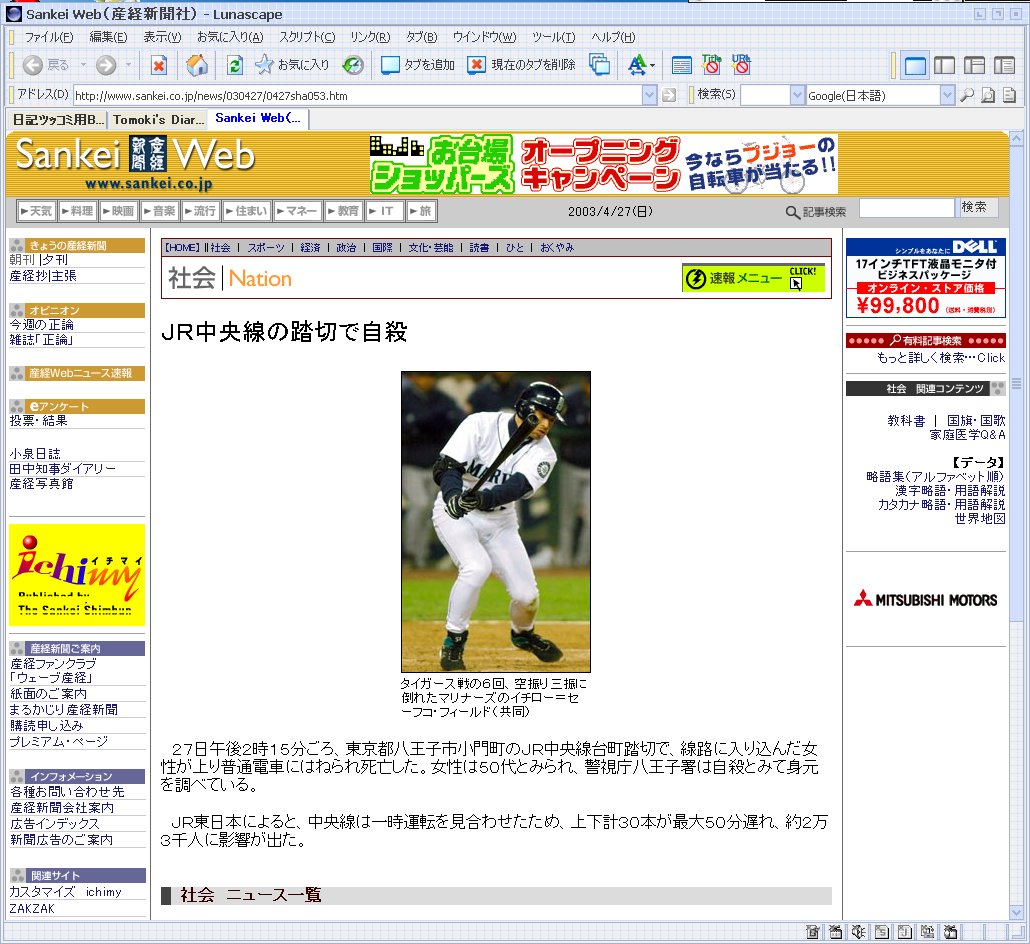 イチロー、三振を苦に自殺。 from 産経新聞。