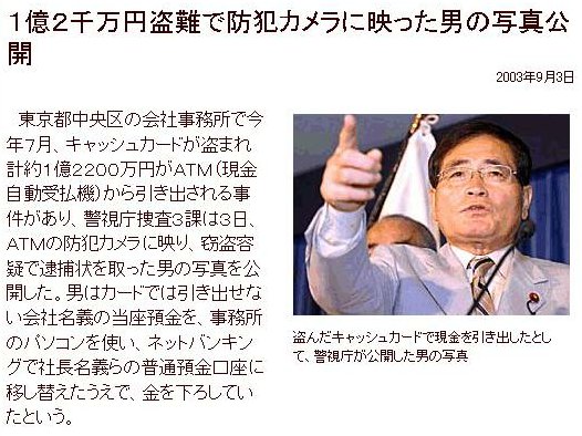 livedoorに掲載された「1億2千万円盗難で防犯カメラに映った男の写真公開」て。