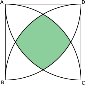 図の中央にある緑色の部分の面積を求めなさい、と。