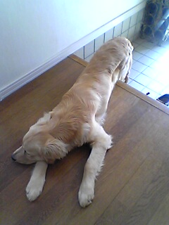 ダメ犬。玄関で何を寝そべってるんだコイツは。。。