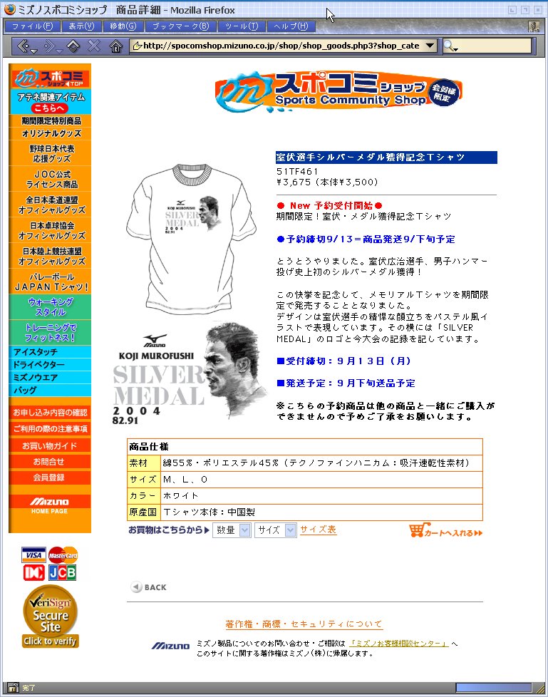 こちら、ミズノのホームページより、記念Tシャツ[greview.net]