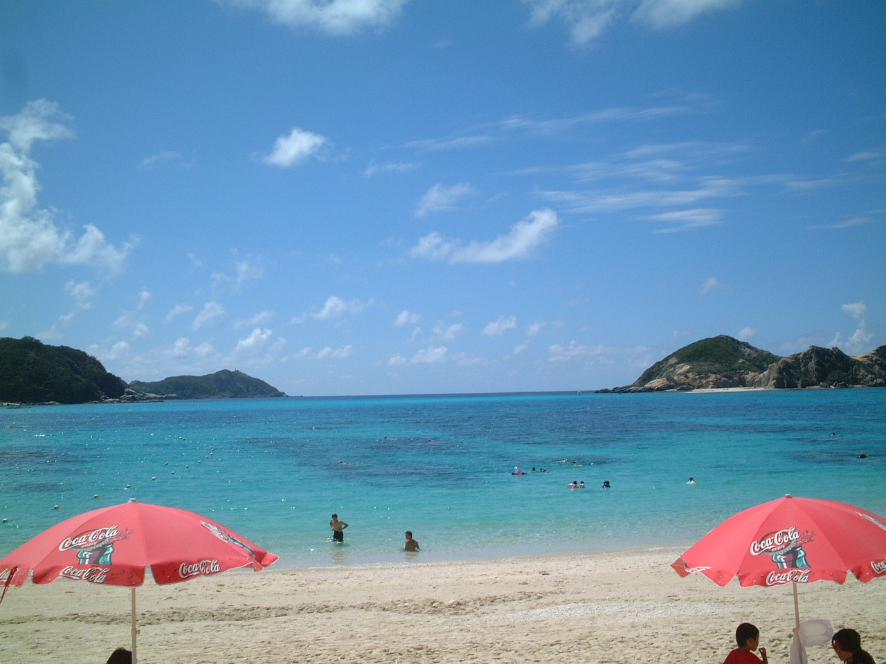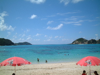 女の子達が一足先にパラソルとシートをレンタルしてくれてました。