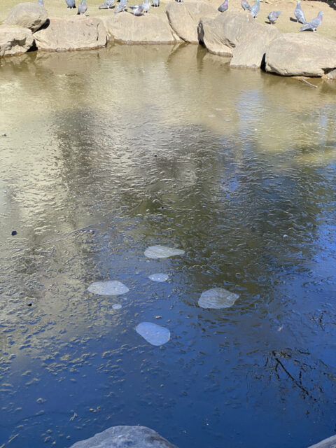 凍ってるよ池。そりゃ寒いわ。