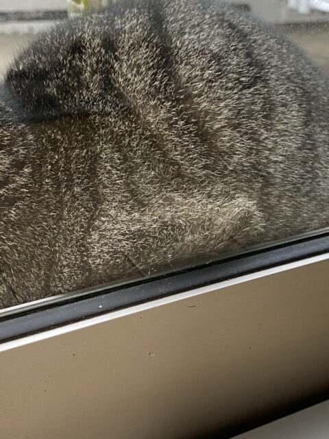 窓枠にちょっとお肉がむにっと。