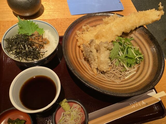 いつものおそば屋さんで穴子の天ぷらとおそば。
