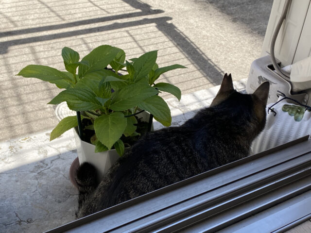 月曜日も、のんびり来てるねキジトラちゃん。