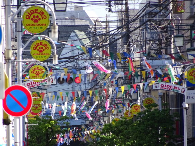 そんな商店街に続く道は鯉のぼりだらけ。