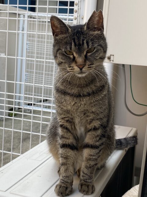 お外にキジトラちゃん。