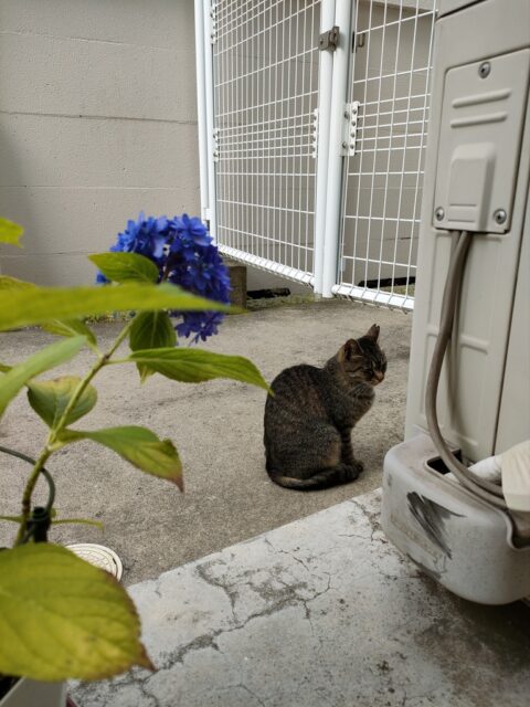 この後、遠くからネコのけんかする声が聞こえてきたら、一目散に飛んでいってしまいました。逃げたのか参戦なのか。