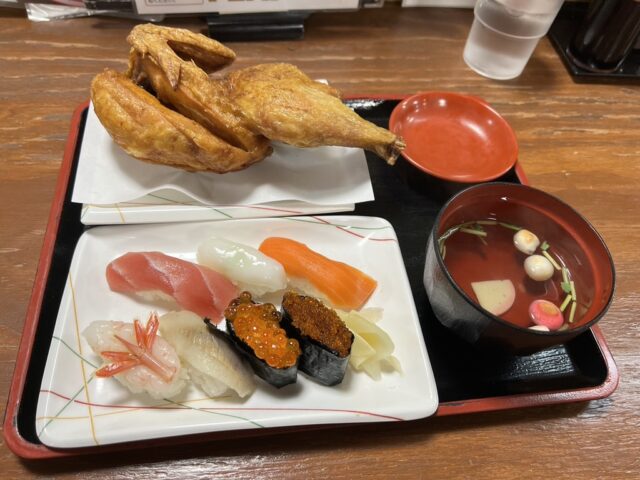 「なると」で半身揚げとお寿司のセット。