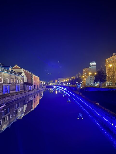 ついでに運河。青いライトアップ中。
