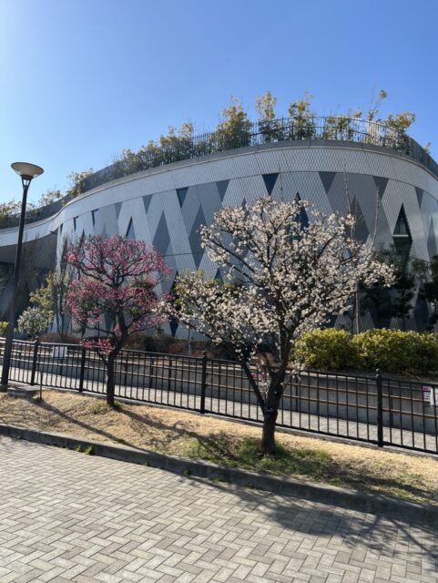 体育館の梅、まだまだ綺麗に咲いていました。