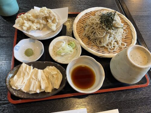 のんびり温泉入って、んでちょっとおそいお昼はおそばと湯葉。