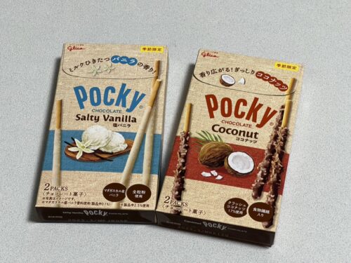 バニラとココナッツ 投稿者: Tomoki | 2022/05/25 0件のコメント 2022年5月25日。 ジョギングに出たけど、さすがに6日連続は疲れが出てしまい、 半分で帰ってくる始末。現在89.5km、多分100km行ける…だろ…うか? — ポッキーの変わり種がまたコンビニに並んでいました。 ココナッツはいつも夏前に出てくる感じありますけど、 塩バニラは過去あったかなぁ。 いずれも美味しいです。 ココナッツは定番にしてくれてもいいのに感あります。
