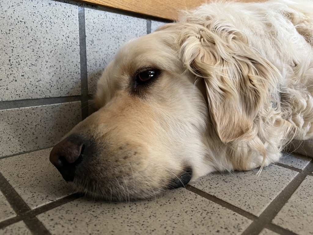 さて実家に戻ってくると、この犬はいつも寝てる気がする。