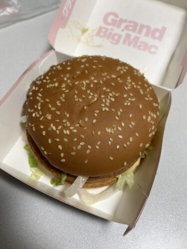 誘惑に負けて 投稿者: Tomoki | 2022/06/14 0件のコメント 2022年6月14日。 昨日あれだけ走ったら今日はいいか、となるものの、 とはいえアクティビティは埋めたいので、のんびりお散歩。 — のんびり歩いていてふと思う。 あー。なんかジャンクなものを食べたいぞ。と。 と言うわけで、その足でマクドナルドへ行きテイクアウト。 たまに食べたくなるビックマック。 しかもグランドビックマックじゃねーか、と。 歩いた距離に対して摂取カロリーのバランスが悪いけど、まあたまには。たまには。