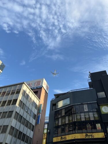 けっこう見える 投稿者: Tomoki | 2022/08/23 0件のコメント 2022年8月23日。 ぶらぶらと出社して、オフィスでお仕事して。 たまには会社にも行きます。 — 早めに切り上げて外に出たら、飛行機の音。 夕方は羽田空港へのルートが都心上空になるので、品川も通るわけですが。 普通にスマホでも映るぐらいだから、けっこう低い。 ただ、このルートは景色が楽しいんですよね。伊丹には負けるけど。