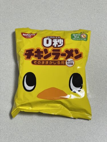 コンビニで0秒チキンラーメン発見。そういや発売直後に売れすぎて出荷停止になったんでしたっけ。