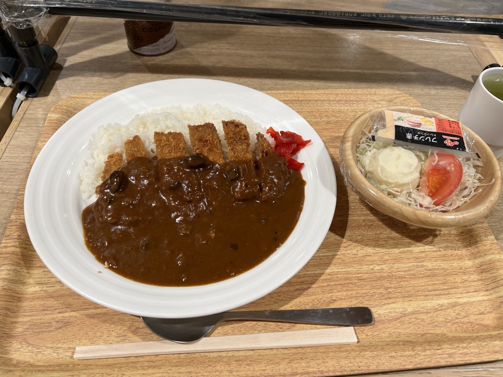 普通のカツカレーなんですけど、このちょっと変わったところで食べられる雰囲気とか楽しい。