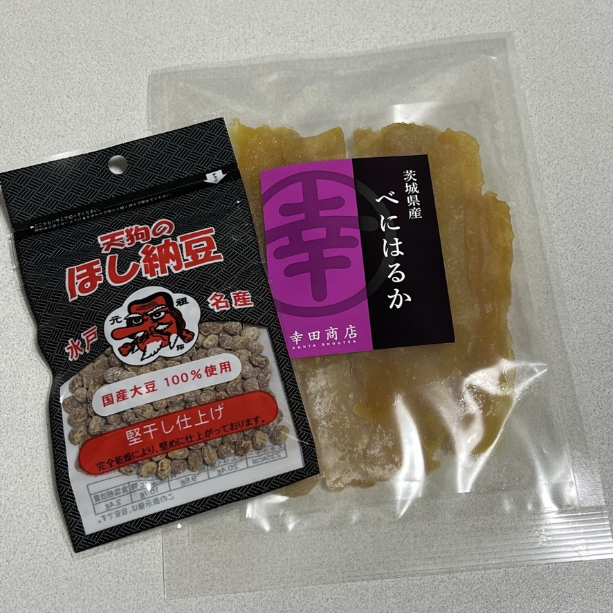 おみやげに買ってきたのは干し納豆と干し芋。干し物つながり。
