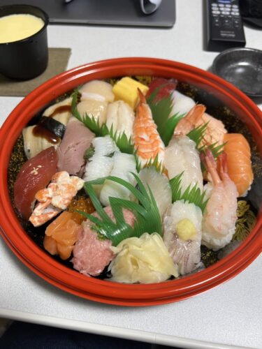 宅配 投稿者: Tomoki | 2023/01/30 0件のコメント 2023年1月30日。 テレワーク終わらせて晩御飯も食べて、さーてジョギング行くかぁ、と窓を開けて 外の様子を確認しようとしたら…風が強すぎてこれは厳しい。 — そんな中、晩ご飯買いに行くのも面倒で宅配頼むあたりに、ずぼら感。 お寿司食べたくなりまして・・・寒いし茶碗蒸しも付けちゃう。